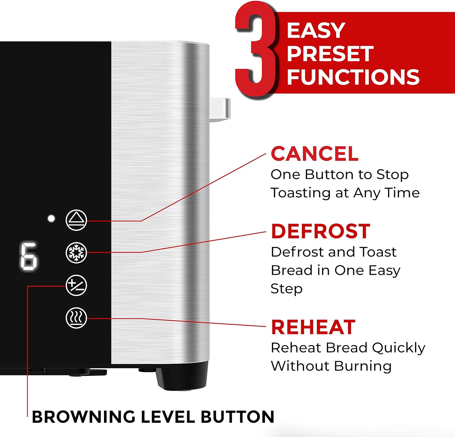 With 6 browning levels to choose from, you can customize your toast to your preferred level of crispiness. The LED display makes it easy to see and adjust your settings, while the stainless steel construction adds durability and style to your countertop.