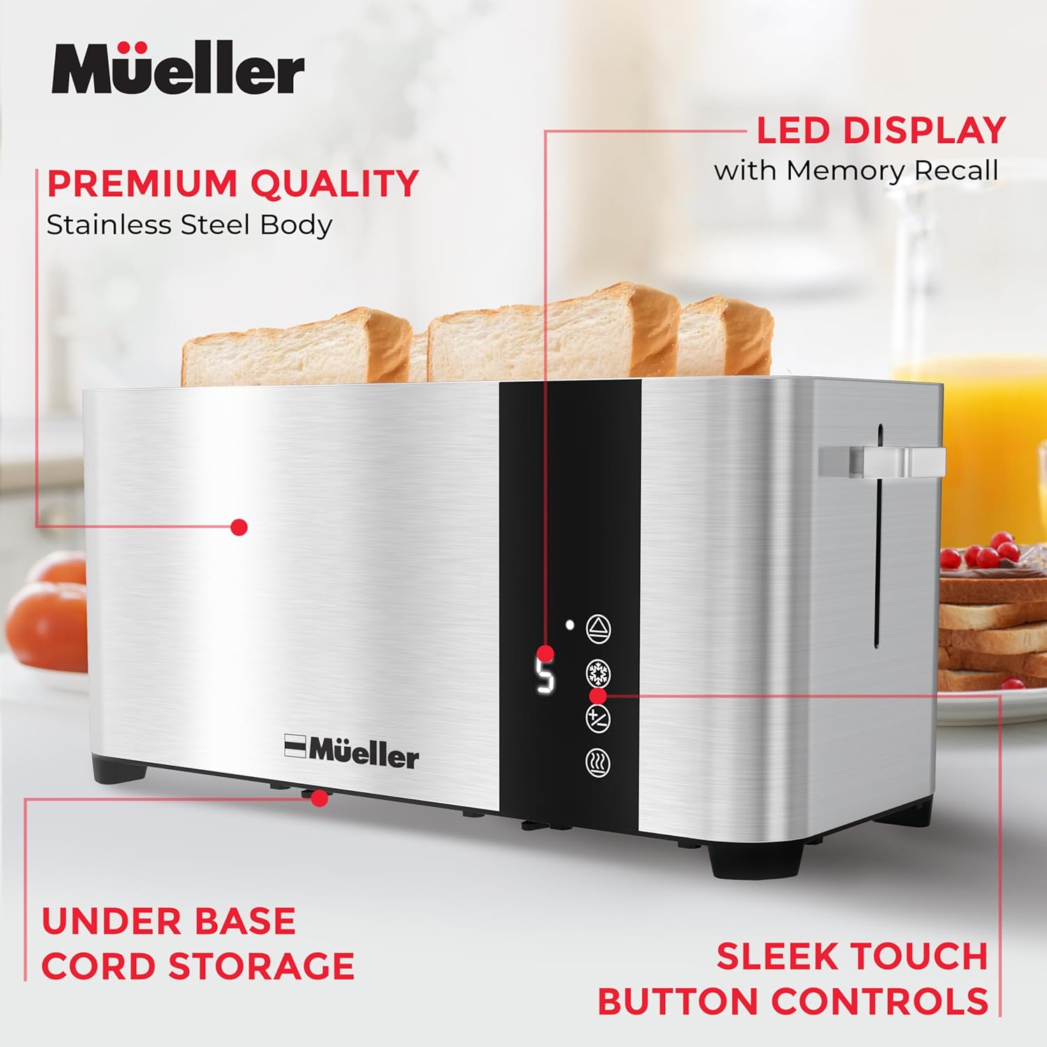 Whether you’re toasting bread for breakfast, reheating leftovers for lunch, or defrosting frozen waffles for a quick snack, the Mueller UltraToast Full Stainless Steel Toaster 4 Slice has you covered. Upgrade your morning routine with this reliable and versatile toaster.