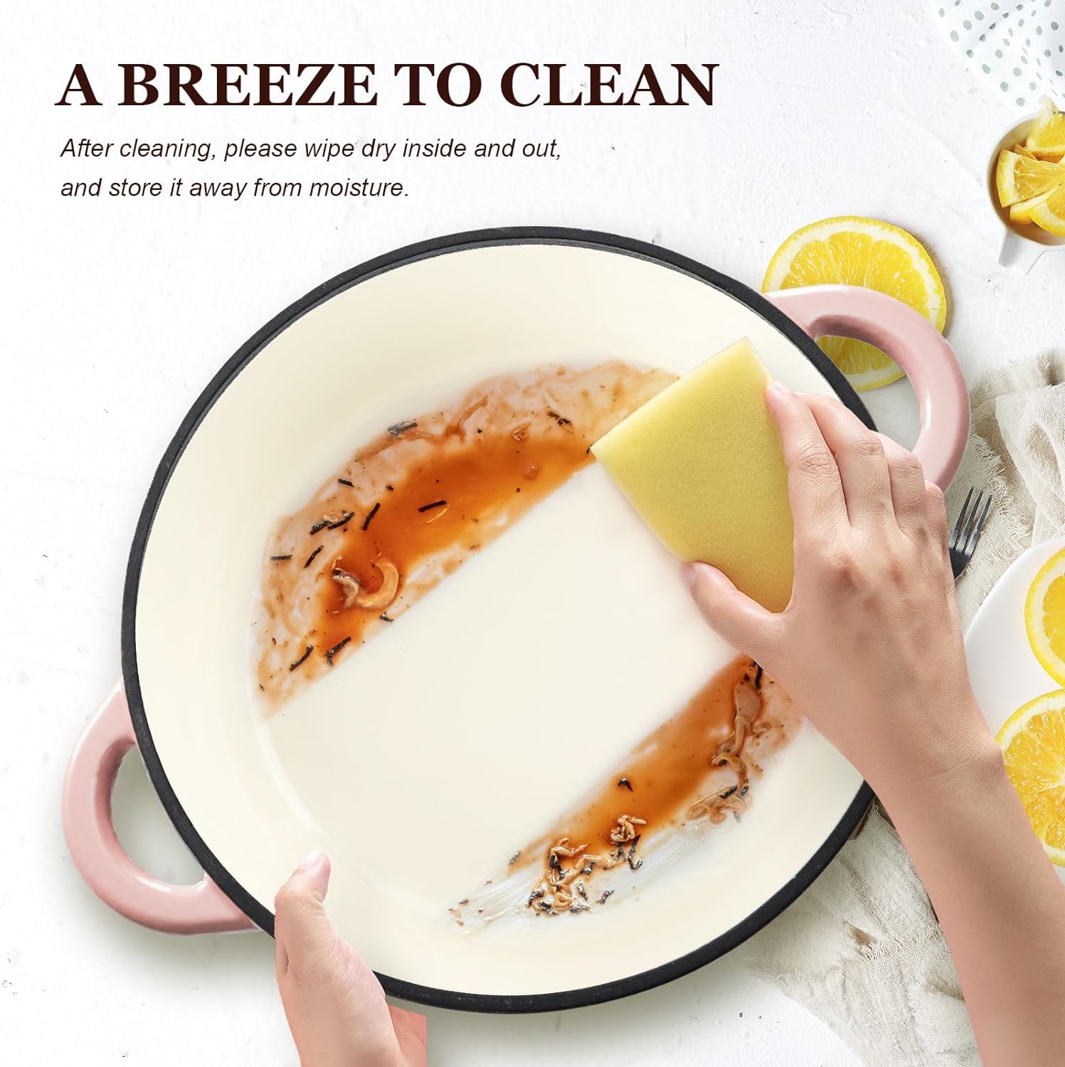 Made from heavy-duty cast iron, this Dutch oven is perfect for braising, stews, roasting, and even bread baking. The enameled coating ensures easy cleanup and prevents food from sticking, while the durable construction ensures long-lasting performance.